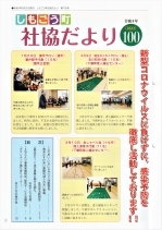 福祉の仕事学習会、社協会員会費、ふれあい・いきいきサロン活動報告、各地区最高齢者祝品贈呈、おめでとう100歳、一人暮らし高齢者親睦旅行、ボランティアセンター陽だまりコーナー、まごころの寄付、行事予定他